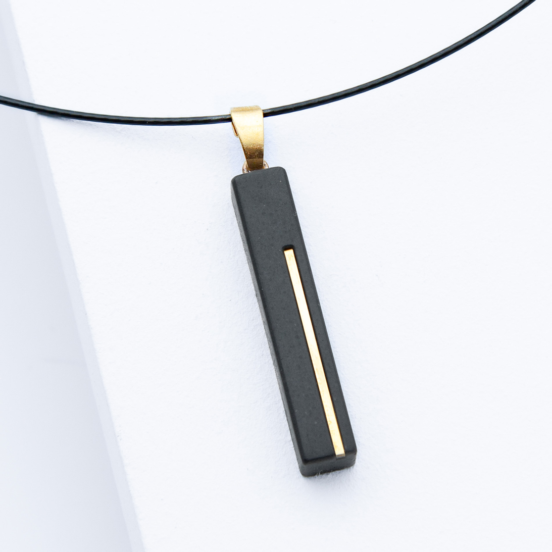 Ebenfalls ein echt trendiger Blickfang im angesagten Skandi-Style ist unser Kette C2 in Gold Grau oder Gold Schwarz. Die 25mm lange Applikation aus poliertem 935er Silber in edlem Gold bringt den Anhänger aus hochfestem Beton auf ästhetisch und zugleich minimalistische Weise zum Strahlen. Besonders alltagstauglich machen wir dein neues Schmuckstück übrigens, indem wir die Betonoberfläche unserer Schmuckstücke mit einer besonderen Imprägnierung versiegeln.