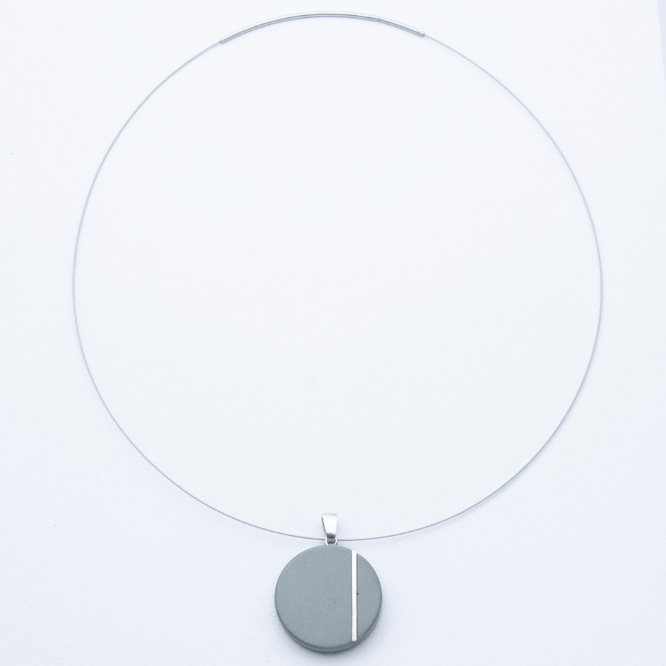 Kette R1 in Silber Grau oder Silber Schwarz – ein wirklich modischer Blickfang, der jedes Outfit zum Strahlen bringt ohne sich dabei selbst zu sehr in den Vordergrund zu stellen. Der schlichte Anhänger aus hochfestem Beton hat einen Durchmesser von 25mm und ermöglicht dir durch seine Anhängerschlaufe aus 925er Silber das Wechseln der 45cm langen Sterlingsilberkette. Jedes unserer Betonschmuckstücke ist einzigartig und somit ein echtes Unikat – Handmade in Germany.