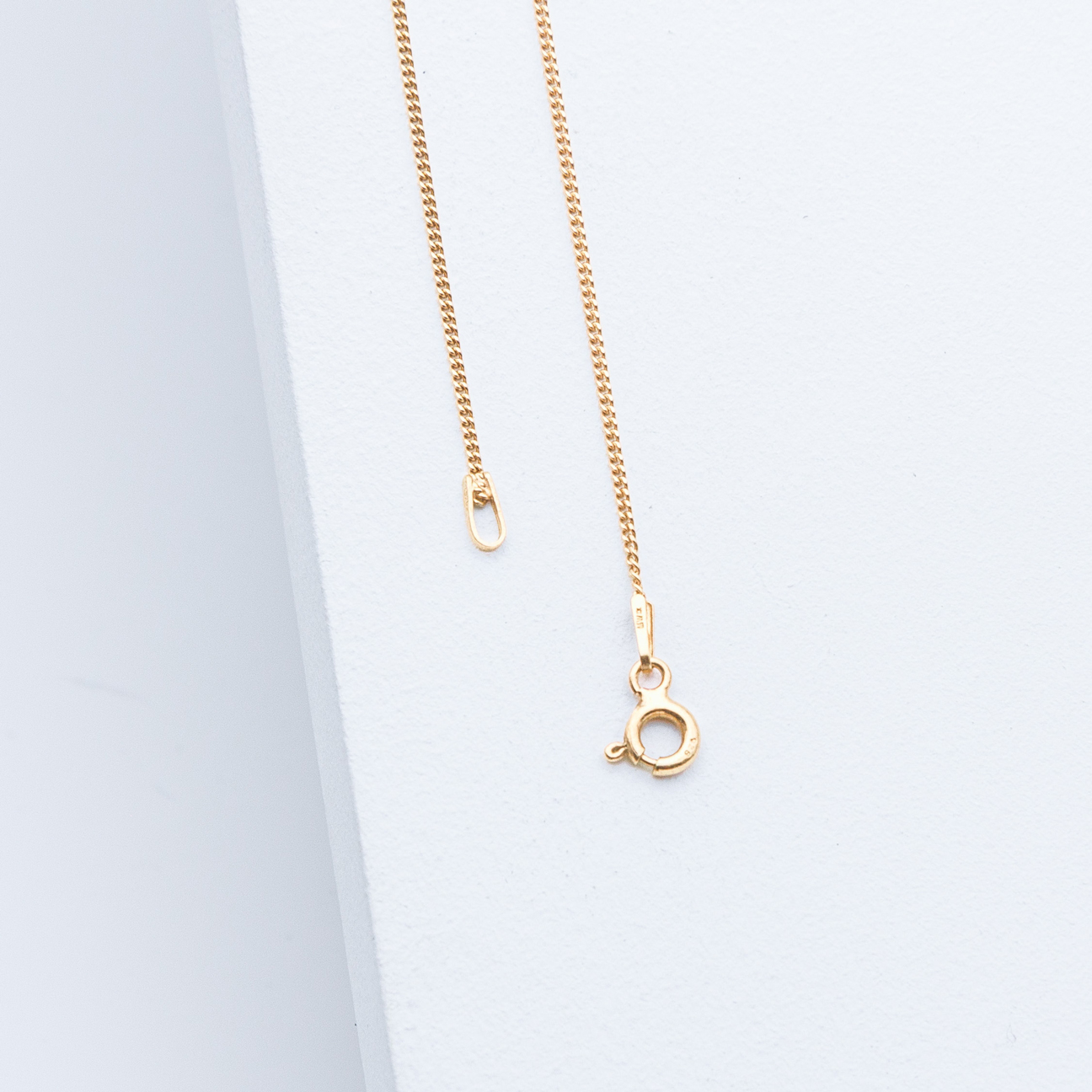 Die Kette wird wahlweise mit einer feinen Panzerkette (45 cm, Federringverschluss) oder einem Edelstahl-Collier (Steckverschluss) geliefert – beide Varianten sitzen sicher und elegant am Hals.